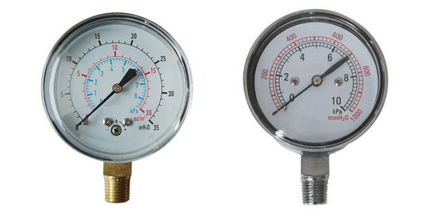 Low pressure gauge suitable for measuring gaseous media, used to measure natural gas pressure as well air flow indication and leak detection, vacuum pumps, air compressors, air filters, vacuum ovens, suction regulators and respirators. The inner test system of low pressure gauge is Composition by capsule which we can supply brass or stainless steel for your choice.